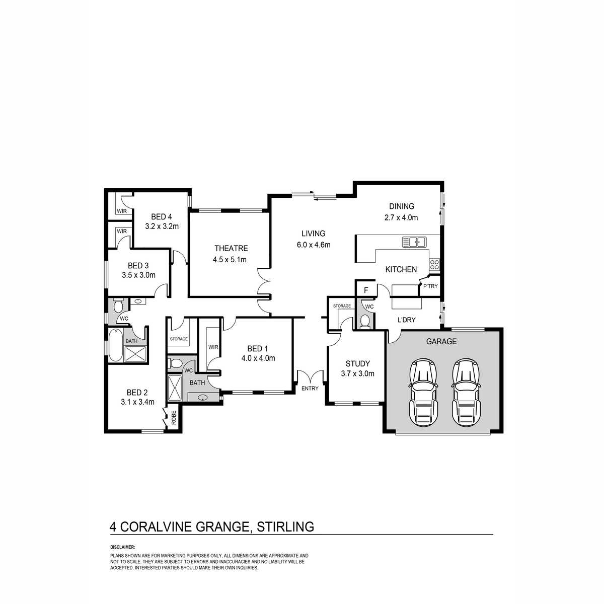 Offering all the internal comforts required for a modern busy family. With multiple living zones, including spacious theatre room, open plan kitchen meals area with large bench top stainless appliances and pendant lighting. The living area flows onto private secure courtyard for alfresco dining. A large room at front entrance is ideal as an office if you need to work from home.